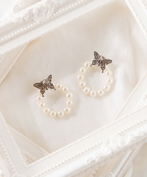 セール アクセサリー Wego パールバタフライピアス ピアス 両耳用 Wego ウィゴー のファッション